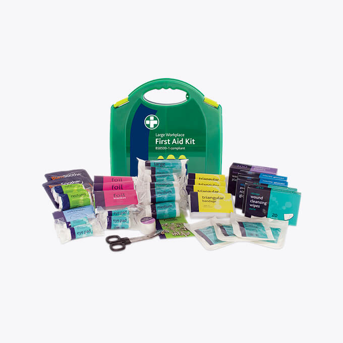 Workplace, burns and travel first aid kits available in multiple sizes. Keep your premises compliant with our wide range of first aid products.