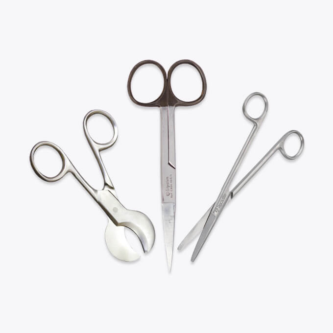 Our range of surgical and medical procedure scissors including dressing, iris, stitch cutting and blunt dressing scissors at the lowest price.
