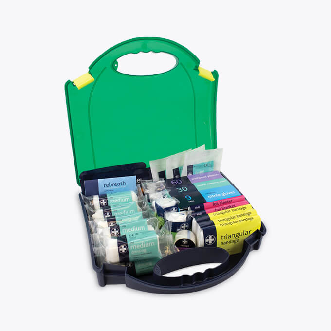 Workplace and travel first aid kits available in a variation sizes. To keep your premises compliant with our wide range of first aid products.